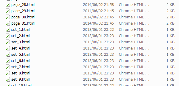 pageうんたらがナビゲーションバー、数字のみのファイルが右側ページのコンテナ、で、index_leftが目次でindex.htmlがページ全体ですね。
