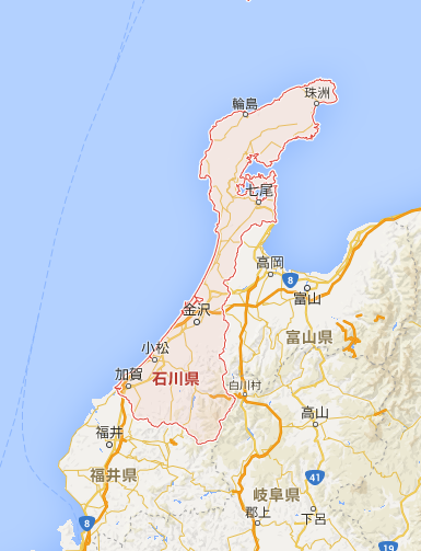 石川県といえば、こんな感じのいびつな形をしています。