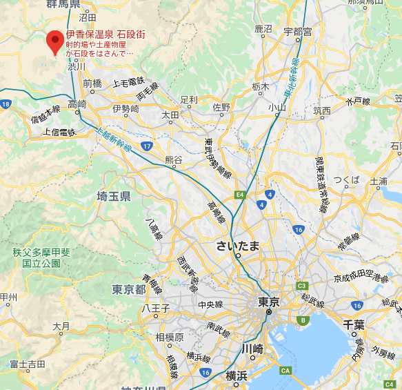 渋川らへんって考えればいいですね。石段街が有名らしいのでビジュアル映えもしそうです。名前はうっすら聞いたことあるなーって感じなんですけど