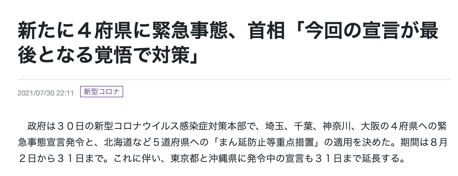 「あーはいはいいつものパフォーマンスね、オリンピックを無風通過させるための期間設定でしょ(笑)」ぐらいの感覚で受け止められてたんですが、これが周りの県に波及しはじめたら、まあさすがに遠慮するというか