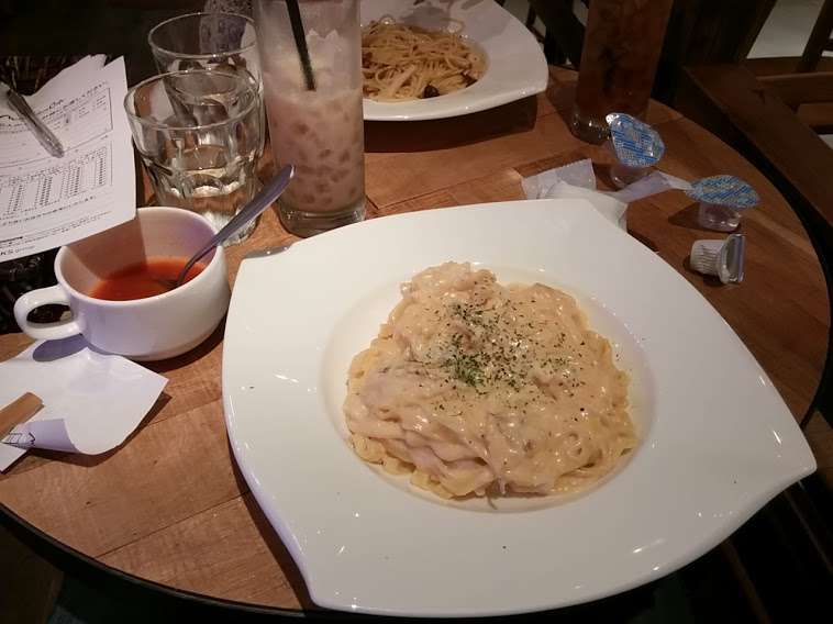 まぁ、みなとみらいのウォータースライダーに乗りたいって彼女が言い出したのでみなとみらいに行ったんですが、なかなか面白いものが見れたなと。このクリームソースパスタもすごい美味しかったし。家でつくれないかなー。