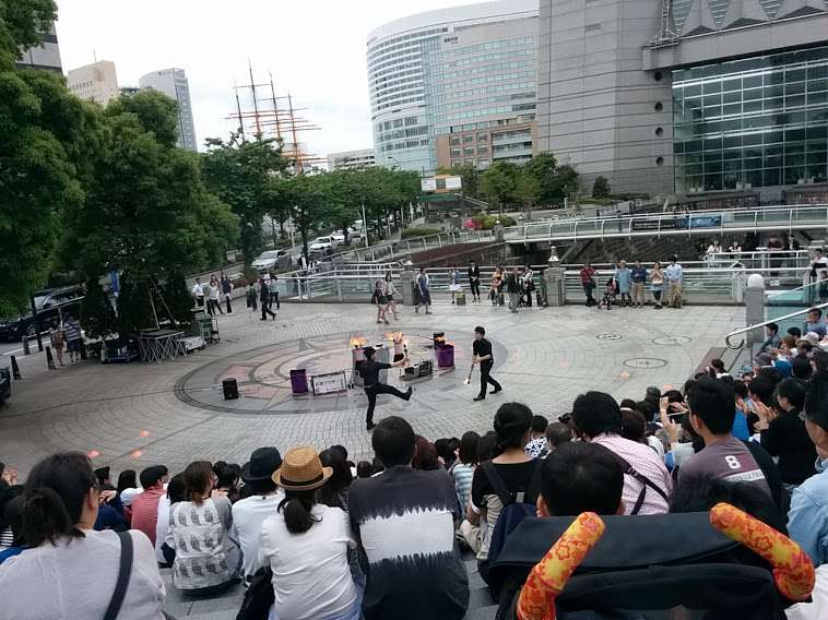 日曜は、みなとみらいで、白身魚のクリームソースパスタを食べたり、桔梗ブラザーズという方がやってた大道芸を見たりしました。