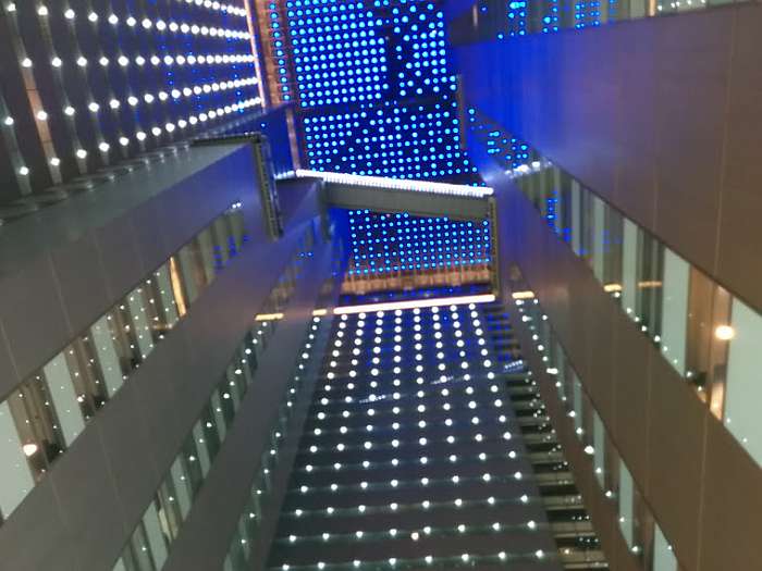 NSビルのこの吹き抜け、結構綺麗でしてね。上を見上げると果てしないです。
