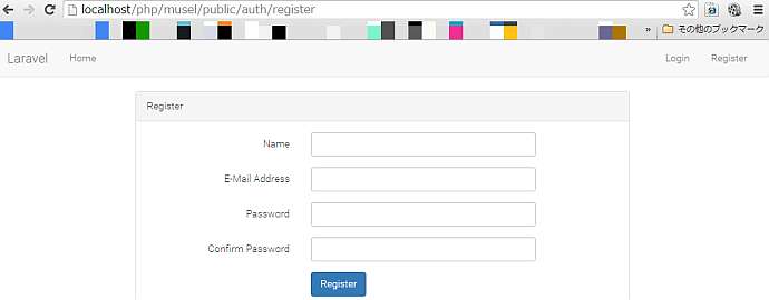 auth/registerにアクセスするとできてしまいます。これではいけませんね。(笑)