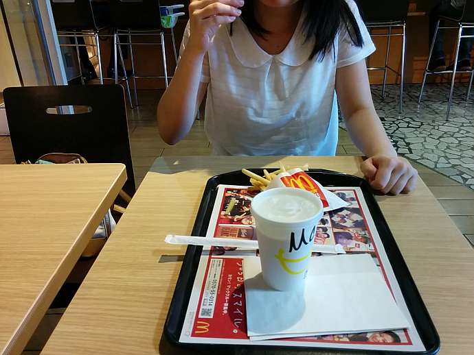 とりあえず、大遅刻したお詫びにマックのポテトフライを奢らされました。MではなくSにするのが彼女の優しさですね。(笑)
