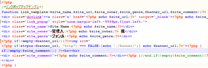 PHPって便利ですね。ほんと。でも、Tab入れたら変な空白出来そうなんで入れてないんですが、おかげでちょっと見づらい・・・・・・。全部echoにすればいいんですけど、それはそれで見づらいしなぁ・・・・・・。(笑)
