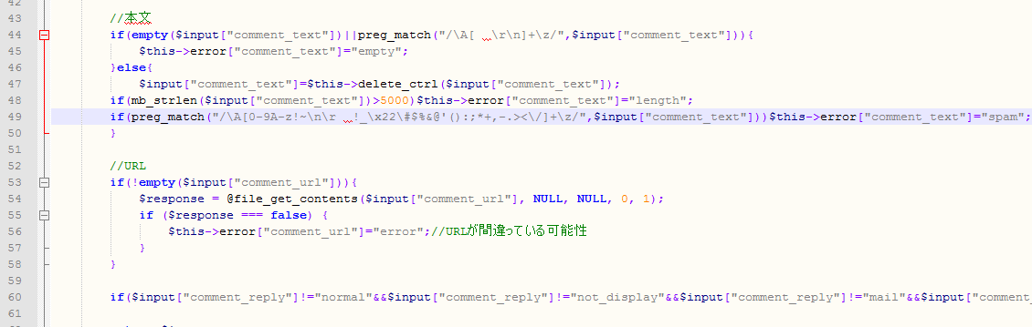 英字のみのコメントはバリデーションという手法を取ります。