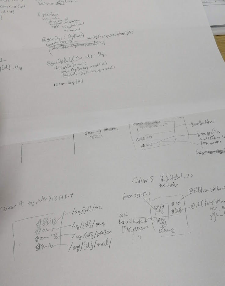 紙ベースでこうやって設計しておけば、後で致命的な誤りを見つけた際修正が簡単ですが、既にコードとして書いてしまっていた場合