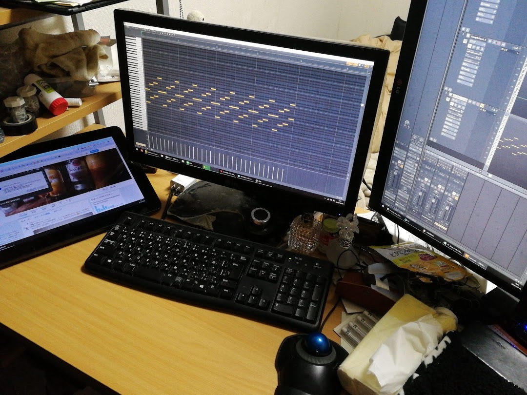 まぁここはほんとうは物置になってたとこなんで、それをうまいこと片付けるのに1時間かかりましたが、これでDTMしながらリファレンス引くことができますねと(笑)