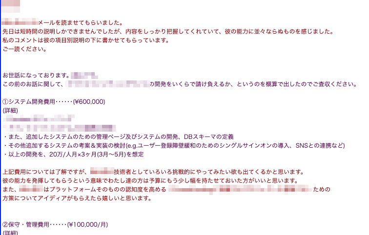 この前、フリーランスとして仕事を請け負うついでに、ご老人たちと共同でビジネスやるかもwwwwwみたいなお話したんですけど、日記で書いたわりと欲張った予算送りつけたんですね。