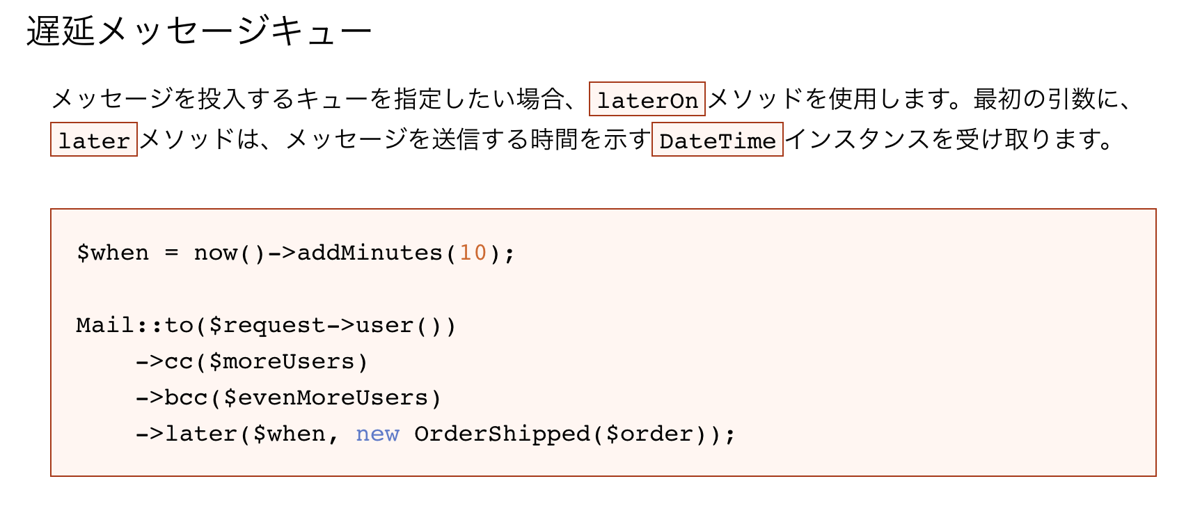 Mail::to($usr->email)->later(now()->addSeconds(6*$delay),new MailingListModule($this->request,$this->sendUser));//それぞれにトークンとか発行できるようにこういう形に一応した