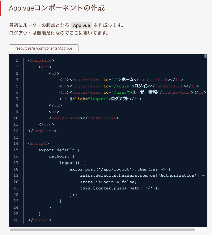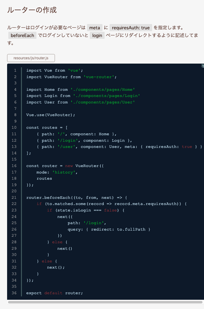 例えばルーティング部分は、ごちゃごちゃ書いてますが、要するとストアのis_loginみたいなのを参照するだけで良さそうですね。ストアはVuexでグローバルに持たせれば良いかな。