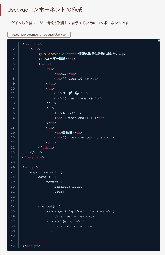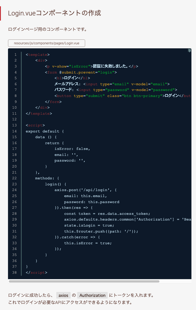 ログインページに関してですが、api/loginに認証情報を渡せば、返ってくるのがトークンってのがわかってるわけです。