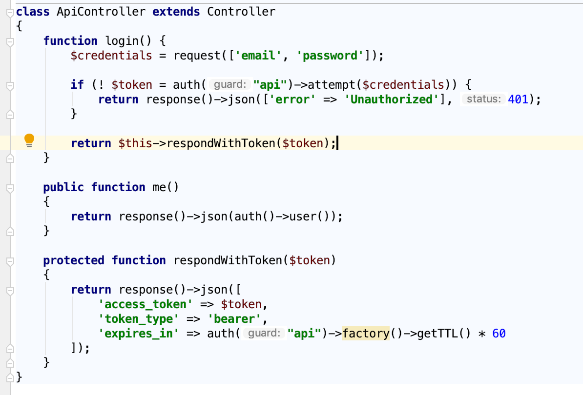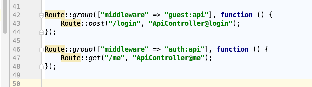 ここのミドルウェアが働いてくれるんだと思います。わけわかんないヘッダがあればガードされます。auth:apiでjwtを指定してるので、そのへんのトークンの判定はライブラリ側が勝手にやってくれます。