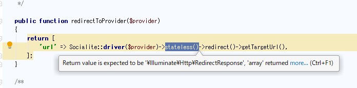で、埒が明かなさそうなのでどうすべきか考えます。とはいえ今後のためにSSOを諦めるワケにはいかないので、どうにかしてゴリ押しで開発するか、Socialiteを諦めるかみたいな選択を迫られるわけですね。