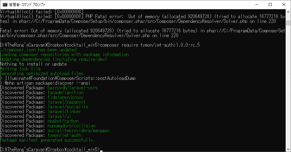 たまたまなんですが、jwt-authが入りました。やっとです。issueを読みまくってたらたまたまヒットしました。他に手段がないのでjwt-authで実装することに決めました。公式のリファレンスは未完成らしいですけど