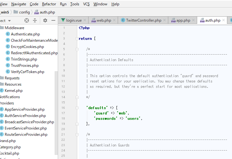 Laravelのバージョンを下げればもうちょっと可能性は広がるのかも知れませんが、僕としてはあまり認証に関して深いレベルまで理解することを必須とは思ってないので、内部挙動に気を配らず実装がしたかったんで・・・・・・。