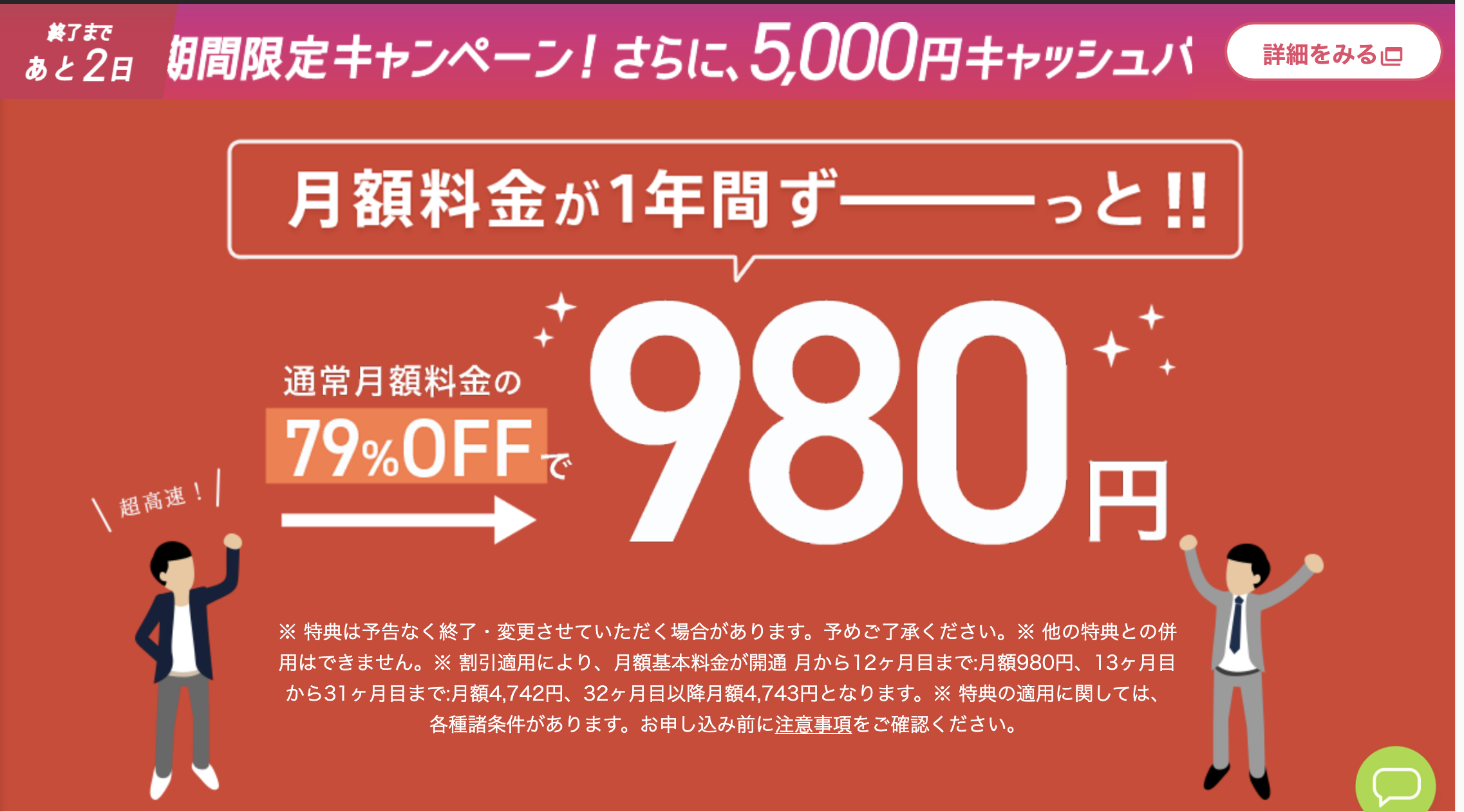 なんとなくnuro使ってみたいからという理由で選んだ、って感じですね。最初1年間の月々1000円は誤差ですし、解約違約金とか工事費に関しては、
