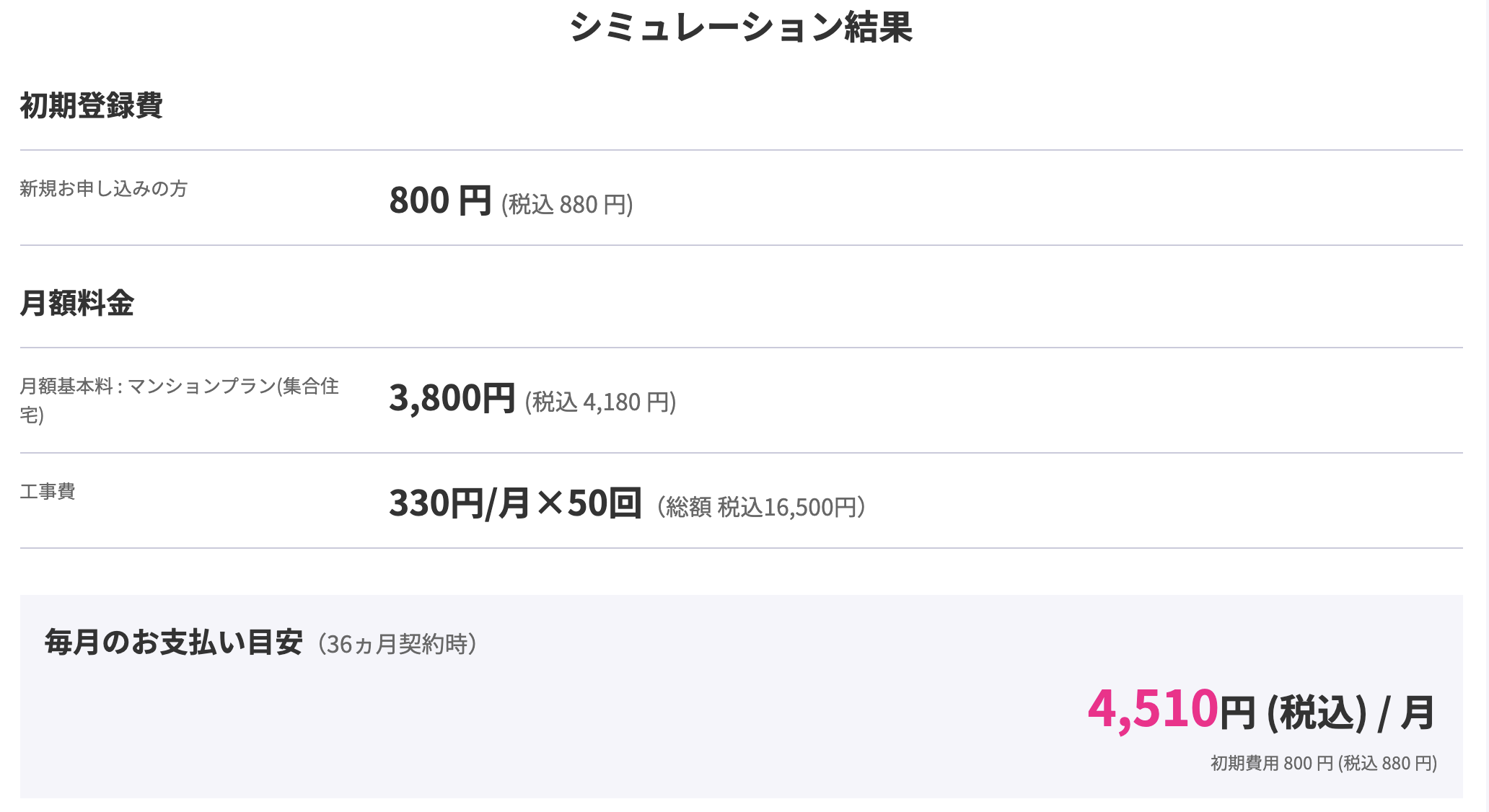 で、こっちがnuro光の料金表ですね。まあ正直大して変わらんって感じです。大きく変わる点としては、月賦割にて請求される40000円という高い工事費を請求されるんですが、これに関しては30回払いが完遂すれば実質無料となります。この点が楽天ひかりと異なる点ですが、楽天ひかりは工事費が16000円程度と安いわけですね。