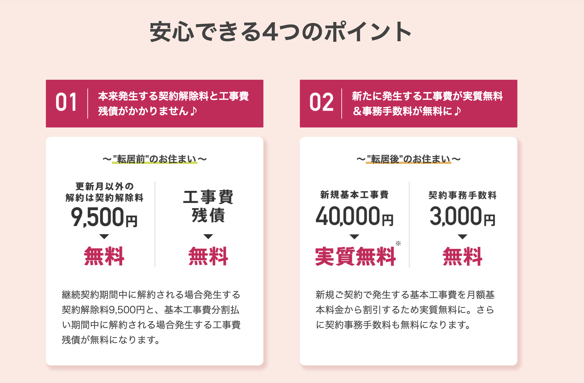 あと、現状nuro光は無料でお引越しできるってのも考慮すべき点のひとつですね。楽天だとこういうサービスはやってないっぽい。