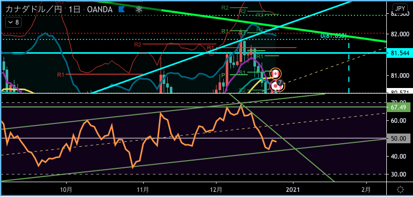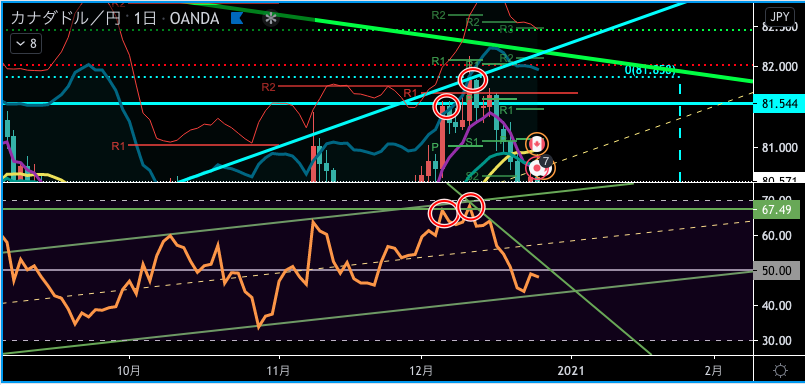 っていうか、RSI使ってなくても入れるポイントだとは思うんですけど、たぶんチャート見てなかったんでしょうね・・・・・・。カナダドルなんてあんま見ないですからね・・・・・・。