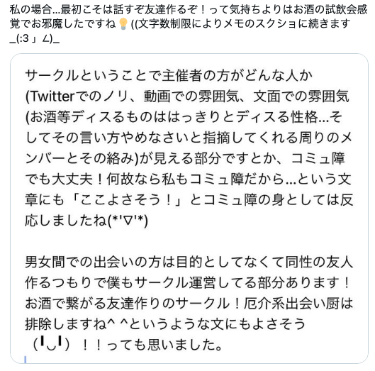 しかし一方で、サークル参加者の女の子から声を聞く機会がありましてね・・・・・・