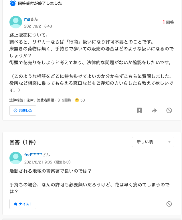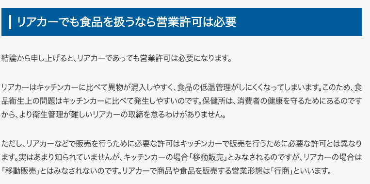 行商っていうのは、露店ではなくリヤカーで営業することを指しておりまして、これなら道路使用許可って要らないんですよね。なのでリヤカー販売とかがあるわけなんですけど