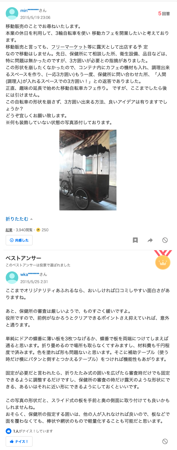そして前者はコストをかけないと解決できないので、なんとかして行商のような区分で実現できないか、というのを考えなくてはなりません。キッチンカーは最終手段ですね。敷地の使用料とか払わなきゃだし、維持コストもかかるので僕みたいに週末だけふらっと営業しに行きたいとか考えてるヤツにはコスパの悪い選択肢ですゆえね。