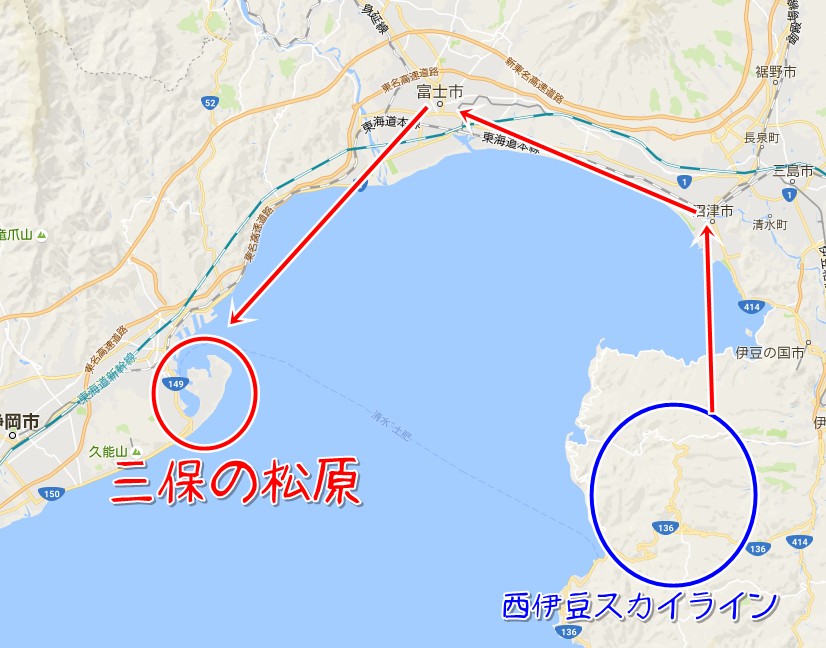 さて、最後に本日の寝床である三保の松原に向かいます。下調べでは野宿できそうな雰囲気をしていたのですが、実際行ってみるとどうでしょうね・・・・・・。