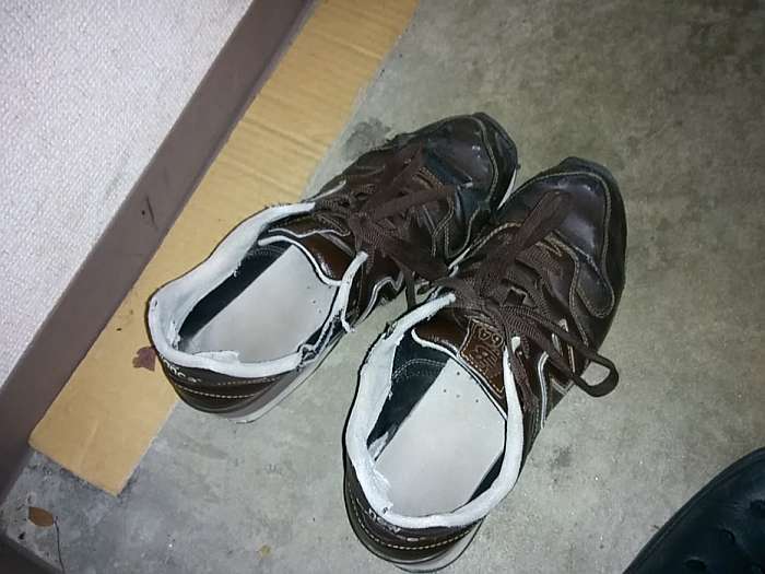 ちなみに、私が今まで使ってた靴はこちら。4年間履き続けた結果、こんなにボロボロに・・・・・・(・ω・`)