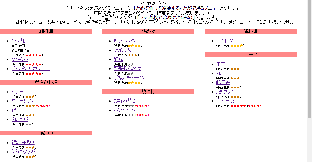 「手抜き」に尖ったコンテンツです。