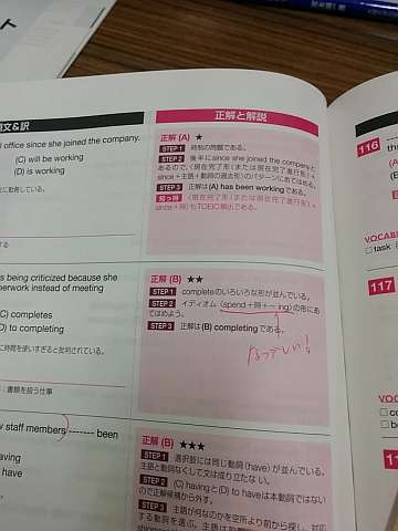 ただ、制限時間から来る焦りが集中力を欠いたような気がします。全部で83問正解で、Part5,6が80%(20分)、Part7が85%(47分)ぐらいでした。時間はだいぶ余裕ありますね。