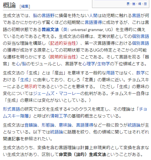 まぁ、その中でも色々カテゴリはあるんですが、大きくいえば、生成文法と言うことができるんじゃないかなと思います。