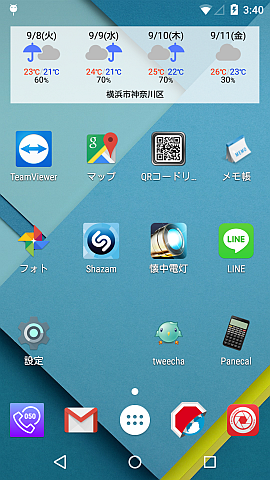 (外出先で天気を知りたいって思うことって実はそんなないんですよね。普通出かける前に調べますし。)調べようと思わない時にも目に入るってのが優れものでしてね。たぶん有用でしょう。