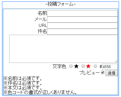 見れば分かると思うのですが、文字色を自分で指定することもできるというシステムにしてみようかと思います。