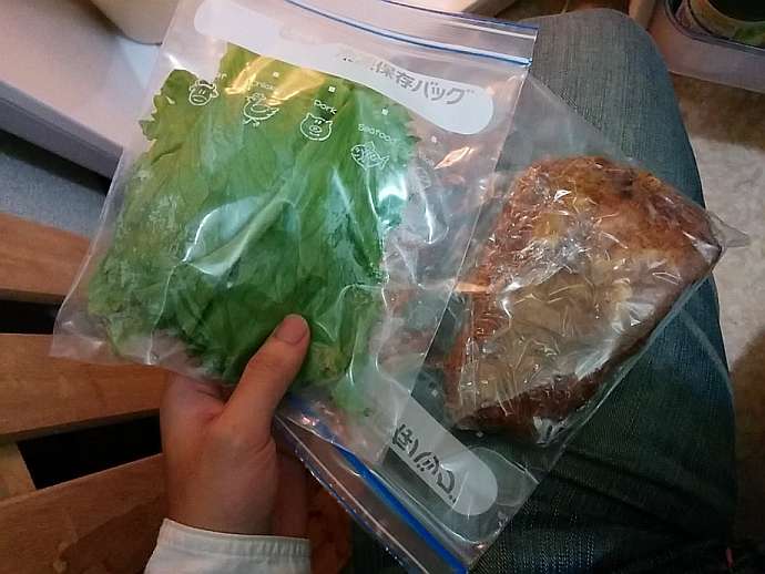 冷凍にすることも考えたんですが、レタスを冷凍ってちょっとよくないかなぁと思ったんで・・・・・・。