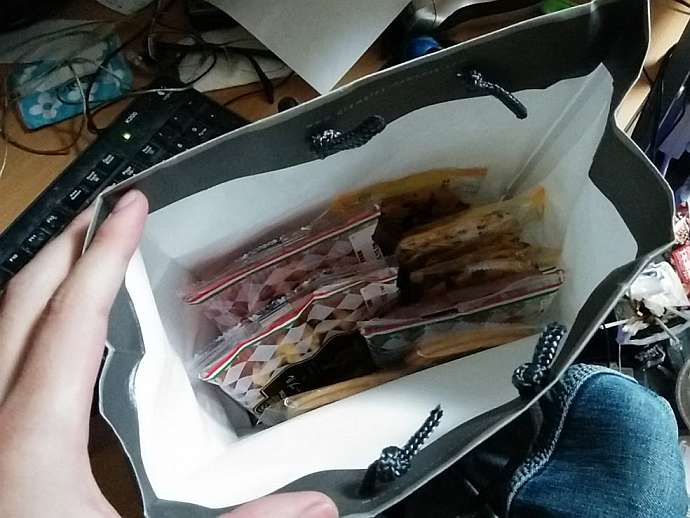 自分が買ってきたものをお土産にもらうとは・・・・・・。