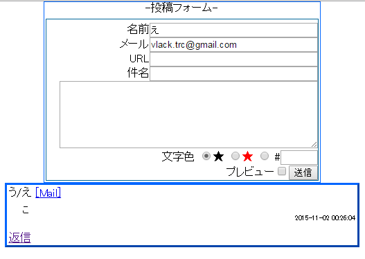 画像は開発中の画像で、今は返信フォームを作っています。特に新しい知識も要らないのでこっから先は記事にはしません。
