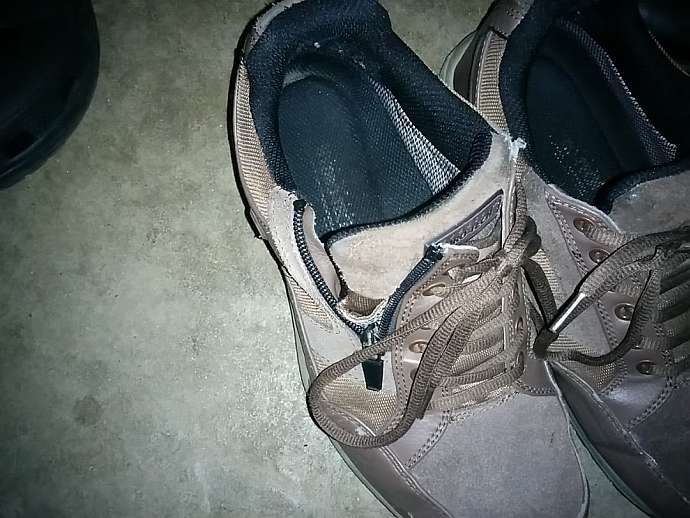もしかしたら靴紐を強く結びすぎとかあるかも知れませんが、チャックが閉まるんだから問題ないでしょう。