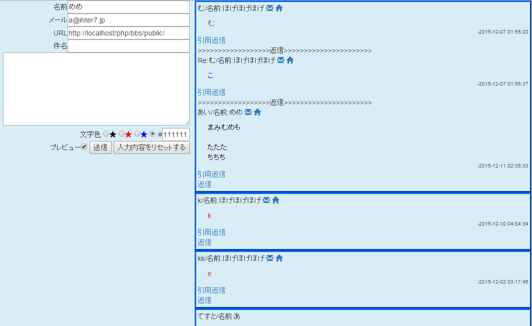 新規投稿画面はとりあえず左に別枠としてとってますが、一般的な掲示板のようにページ上部においた方がもしかしたらやりやすいのかも知れませんね。どうなんでしょう。