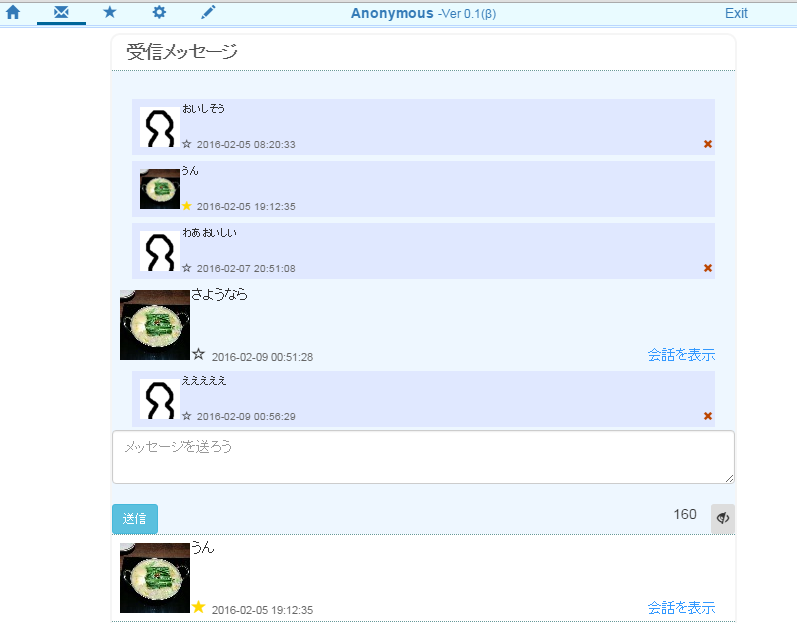 メッセージ受信画面はこんな画面です。