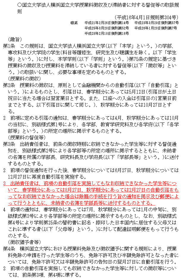 さて、学費を納入しない場合どういう流れになるのかっていうのがこちらのページに書かれています。