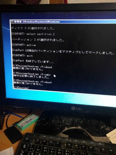 まぁ、似たような症状は以前にも経験しているので、bootrecで修復すればよし(・∀・)と甘く見ていたのですが・・・・・・