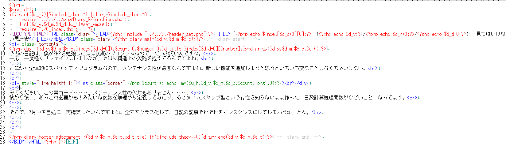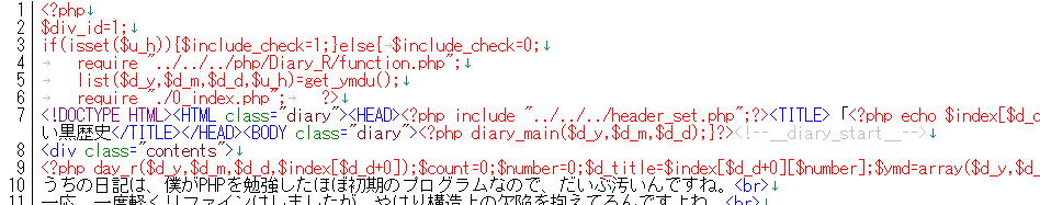 うちの日記は、僕がPHPを勉強したほぼ初期のプログラムなので、だいぶ汚いんですね。