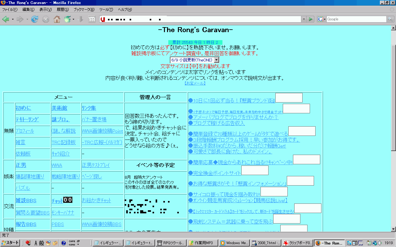 ※いまのデザインになるまではこんな感じだったんですよ。日記もない頃です。金の亡者だったので広告だらけなんですよね