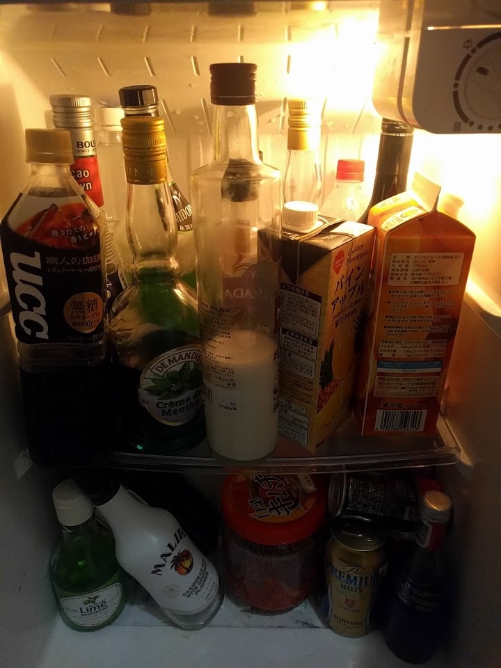 本来は、間違って買ったピニャコラーダと、あんまり使わないであろうカシス、あとコーヒーあたりを処分してスペースあけたいんですけど、誰か宅飲み企画しません???うちじゃなくても持っていくよ(笑)(笑)(笑)たのむよ(笑)(笑)(笑)