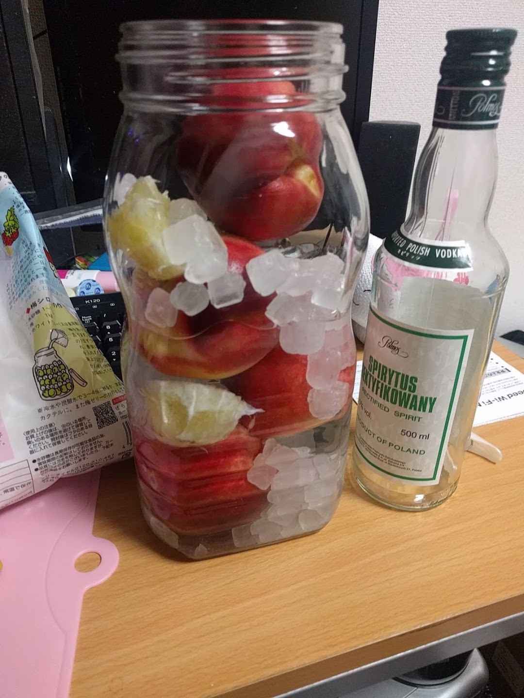 四半世紀の誕生日記念と、退職宣言祝いを兼ねて果実酒をまた作ってみました。スピリタスが1本しか手に入らず、案の定足りなかったのでブランデーだのラムだのぶっ込みました。