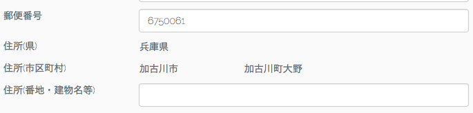 で、本題ですね。住所を郵便番号から自動取得させるようなシステムにします。というか