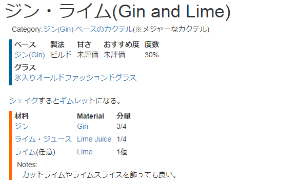 「メジャーなカクテル」という見慣れない表記が追加されていますが、これに関しては数日後の日記にて触れる予定です(笑)