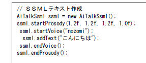 具体的には、startProsodyメソッドとstartVoiceメソッドの順番を逆にしないと設定が反映されません。理由はわかりません。